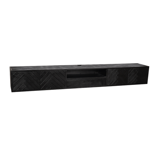 Oorspronkelijke prijs €329,00 - Oorspronkelijke prijs €329,00Oorspronkelijke prijs€329,00€329,00 - €329,00Huidige prijs €329,00| /Dit stijlvolle zwevende TV-meubel is gemaakt van gezandstraald mangohout en afgewerkt met een moderne zwarte lak. De unieke visgraatpatroon aan de ...